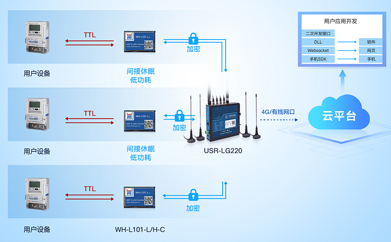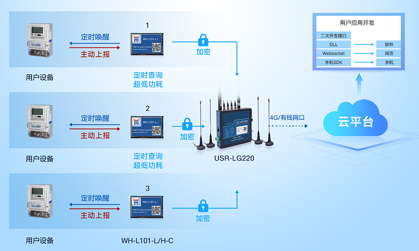 参考案例:WH-L101-L-H20和USR-LG220集中器轮询唤醒模式示例https://www.usr.cn/Faq/1165.html