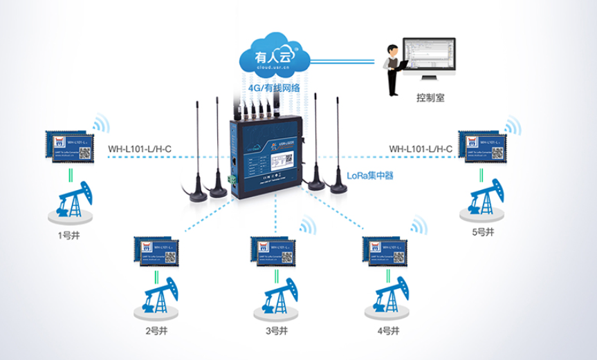 LG220支持在户外远距离条件下无线传输,免除资费成本。同时,产品可对多个油田进行数据监测,有序收集各个油田状态,方便管理和全面检测。(备注:底端设备需支持Modbus协议才能在有人云解析)