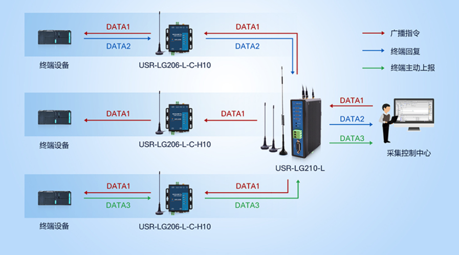服务器与设备间可直接透明传输,所收即所发,简单易用,LG210-L支持一对一和一对多通信。
