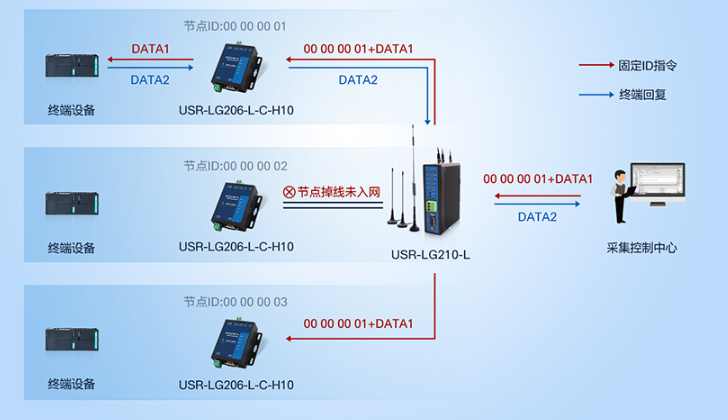 参考案例:WH-L101-L-H20和USR-LG210组网模式组网透传固定ID示例https://www.usr.cn/Faq/1163.html