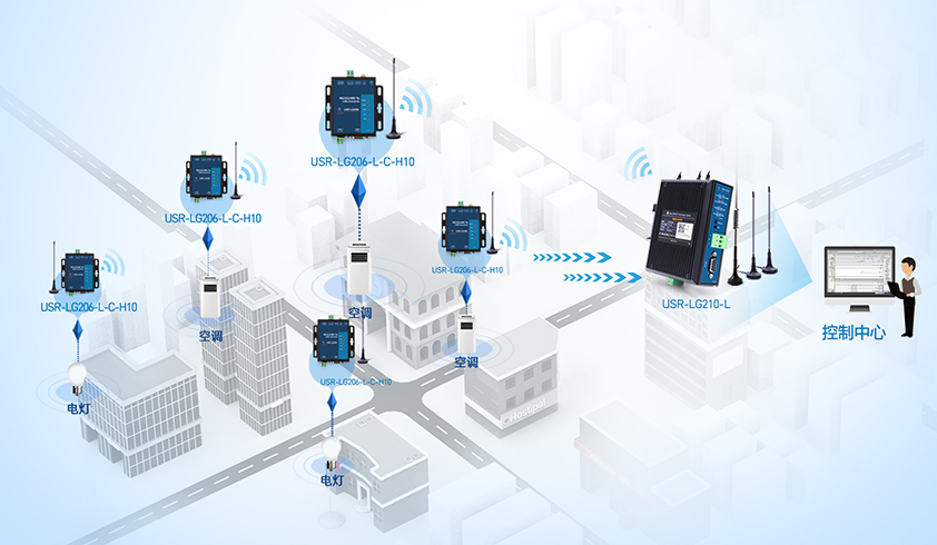 大型办公楼需对空调、电灯等设备进行分区域管理。此时,可选用多个LG210-L与不同区域内的空调、电灯等设备连接,分别控制不同区域内相关设备的启停
