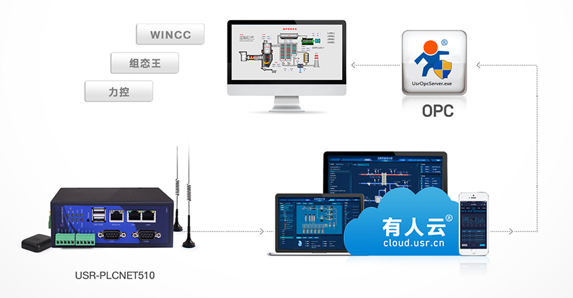PLCNET510网口连接PLC100对接组态王https://www.usr.cn/Faq/1016.html