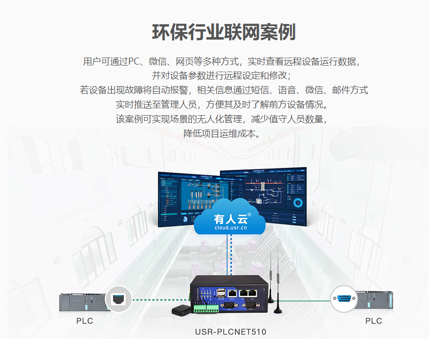 借助plcnet510,通过我司有人云平台,工作人员可以远程监控plc的工作状态,减少客户出差。
