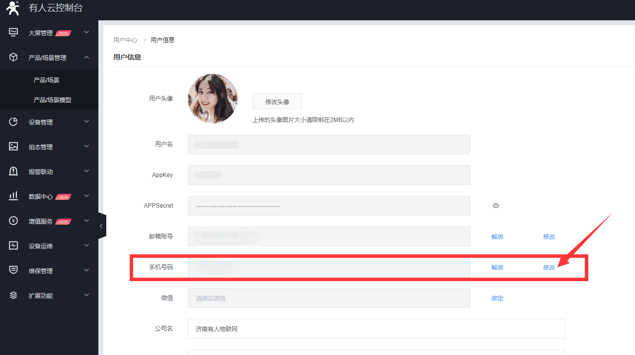 因为工单系统目前还不支持客户自行修改,可准备好 公司信息、有人云账号密码、新手机号,以及邮箱地址对接线上技术支持IM.usr.cn进行修改。