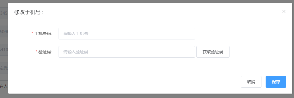 3、在弹出的修改手机号界面输入新的手机号,获取验证码后输入验证码,保存即可修改成功
