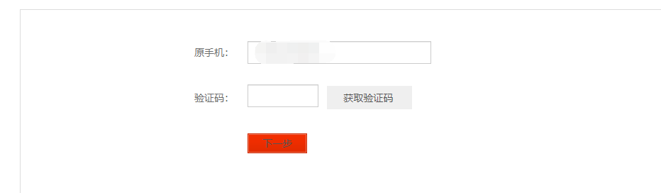 3、在弹出的界面输入原来的手机号,获取验证码后输入验证码,点击下一步