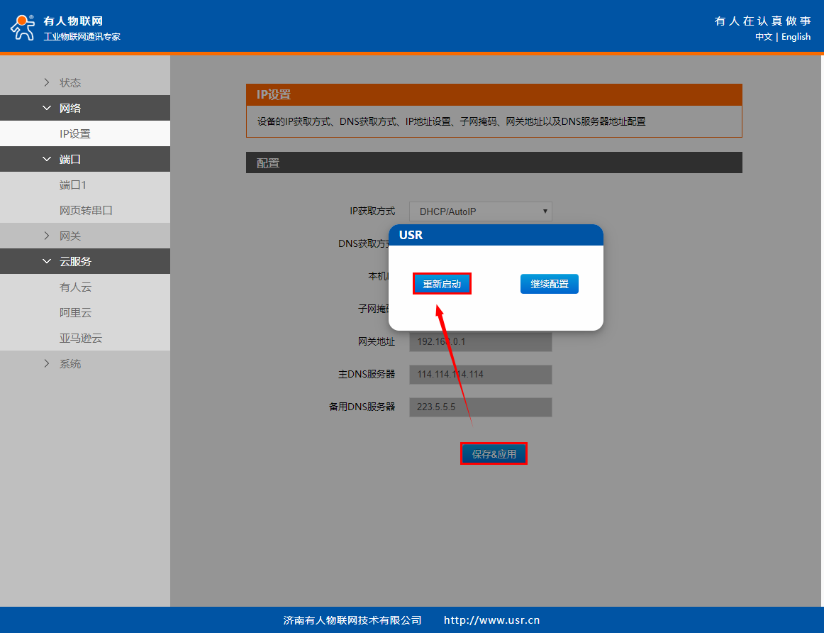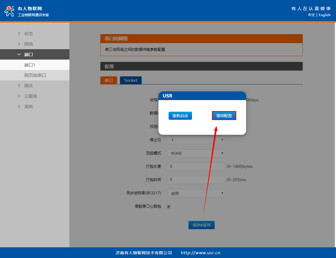 在“端口”>“端口1”界面中的“Socet”配置Socket A的工作模式为“Httpd Clinet”