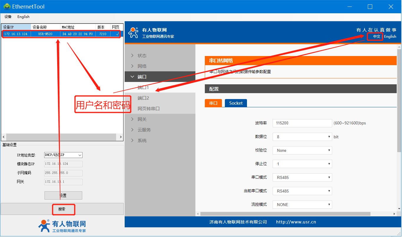 硬件连接:串口设备--RS485/232--N520--网口--路由器--PC(服务器)