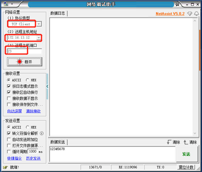 协议类型:TCP client,如果USR-N520做TCP server,那软件就设置为TCP client