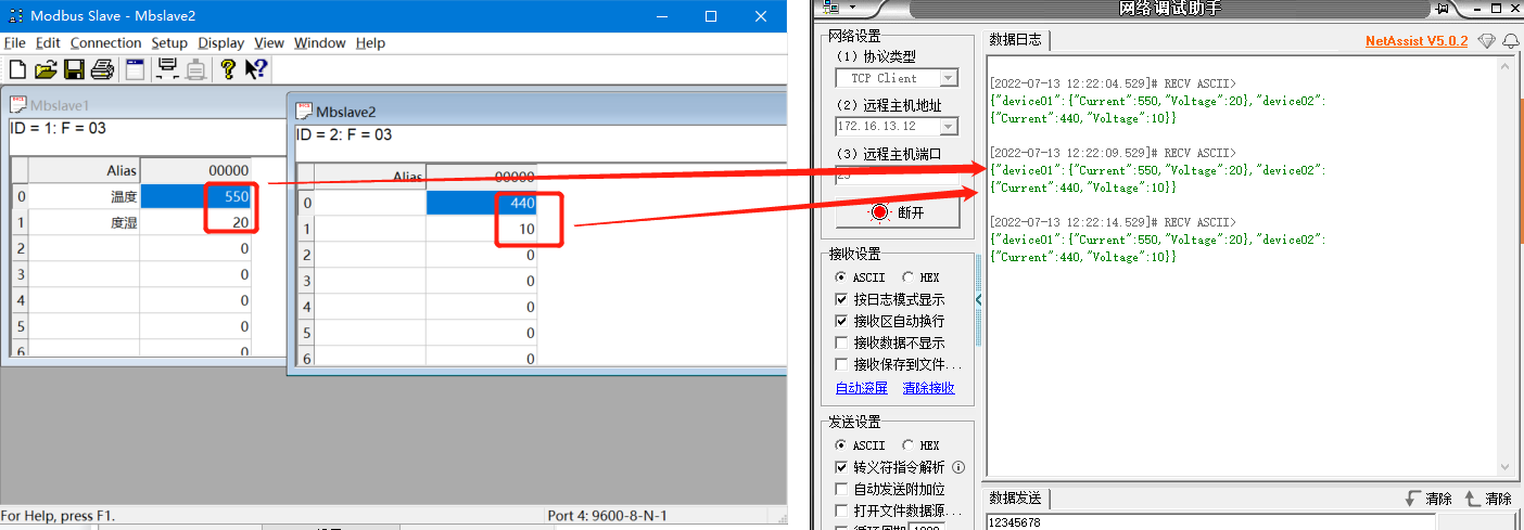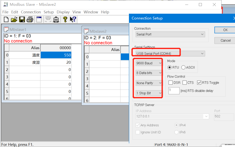 说明:本案例中,串口设备用电脑端的modbus slave软件模拟来测试