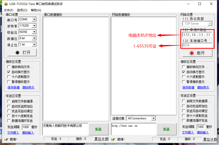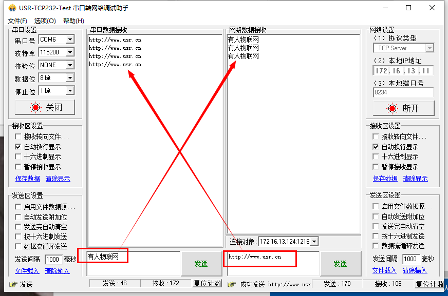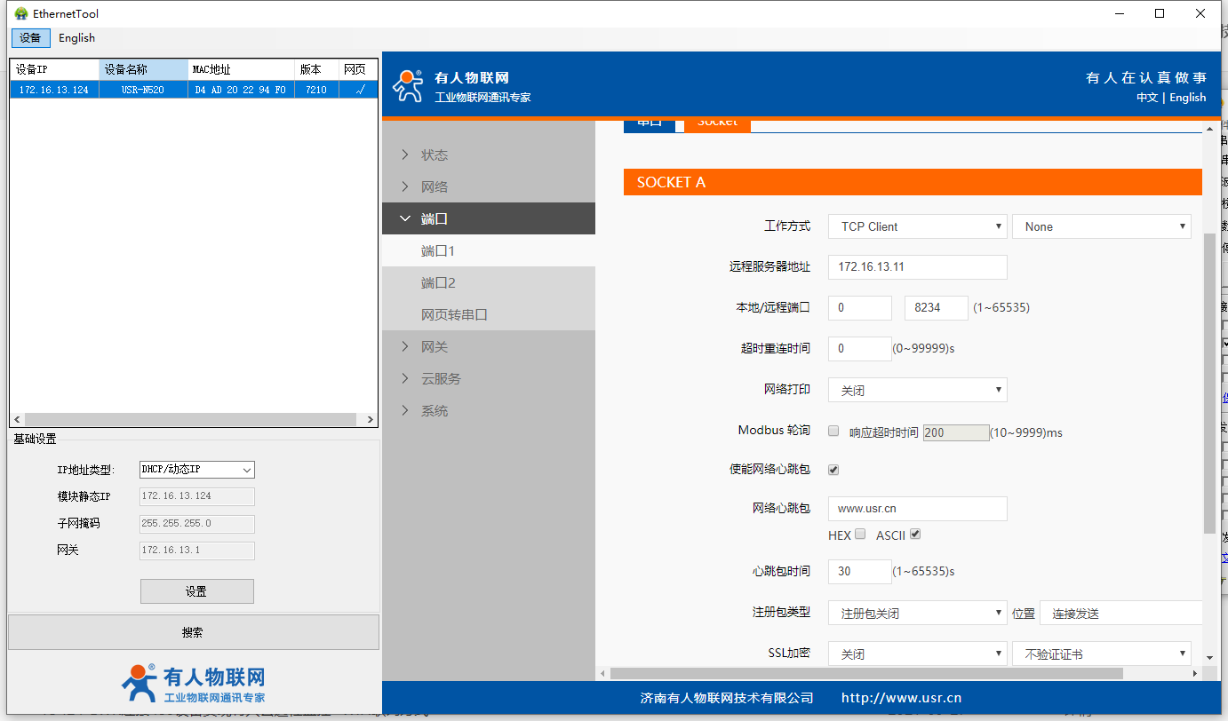 串口网络二合一调试助手:https://www.usr.cn/Download/27.html