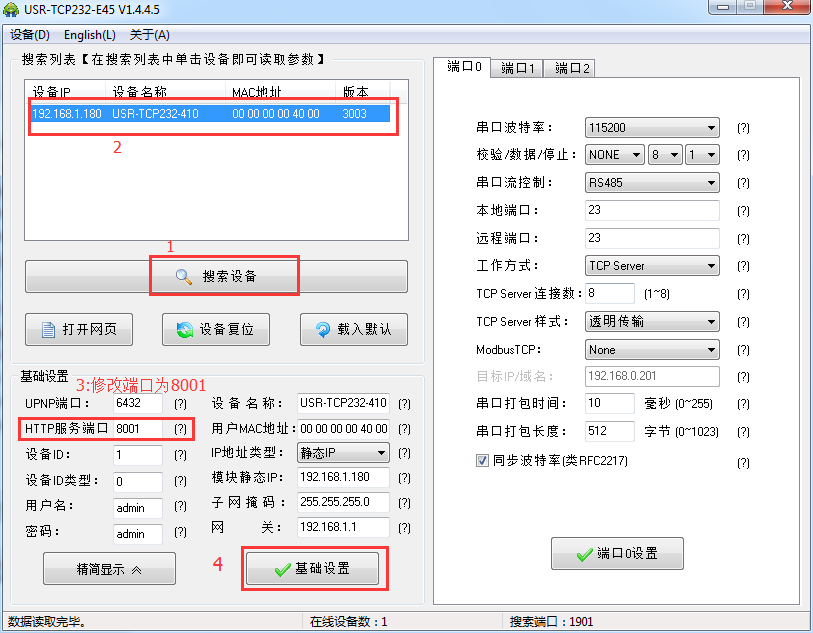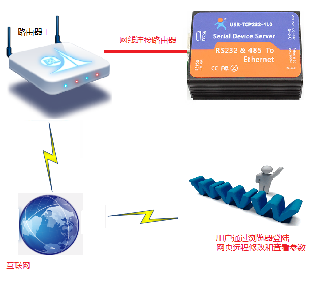 TCP232-M4系列串口服务器实现远程访问网页修改参数。