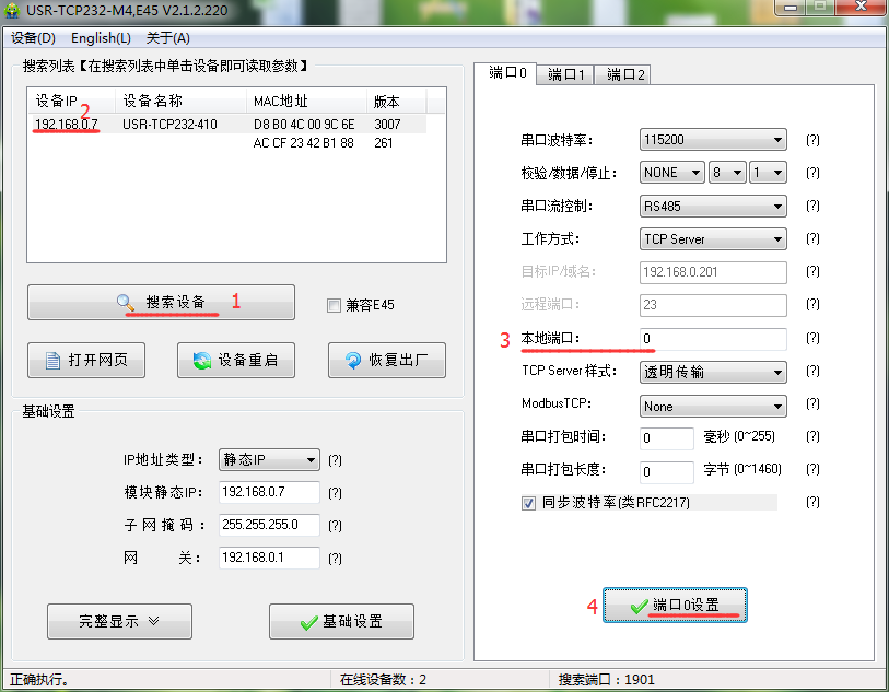 方法:将模块断电,通过电脑DOS命令ping模块IP,如果能ping通,说明IP冲突。