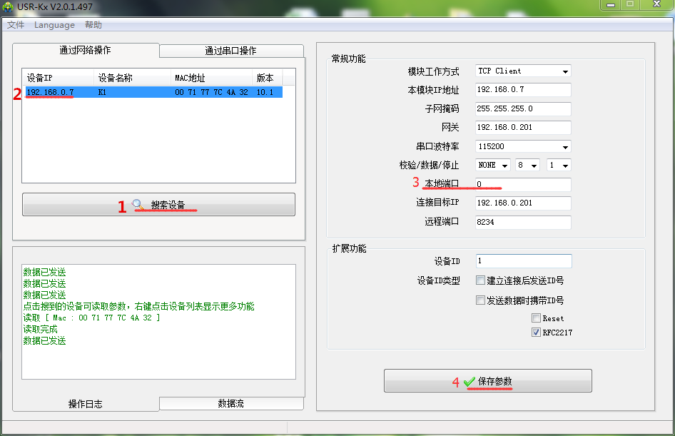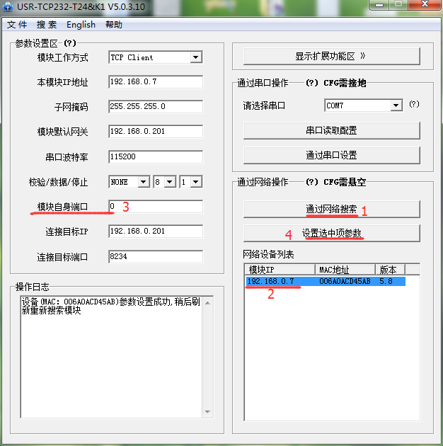 方法:可通过一个网络调试软件(软件点击此处下载),将IP地址和端口设置与当前使用到模块参数相同。使用软件模拟客户端去连接服务器,查看是否能连接上。也可以将服务器重启。