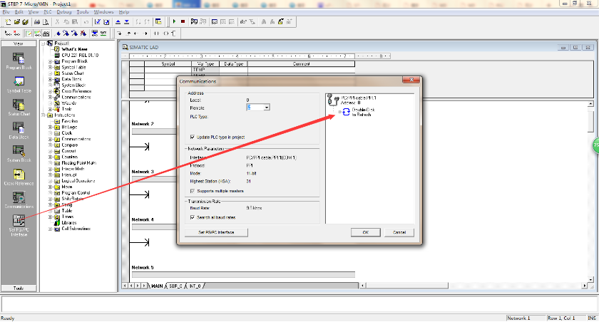 点击设置PG/PC接口,选择PC/PPI,点击属性,将超时时间设置大点,设置10S或者100S.然后点击本地连接选择刚才虚拟的串口com1.