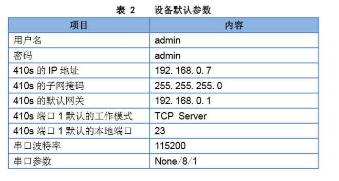 3.给电脑设置静态IP,要与410S的IP在同一个网段(410S默认参数见表2)。