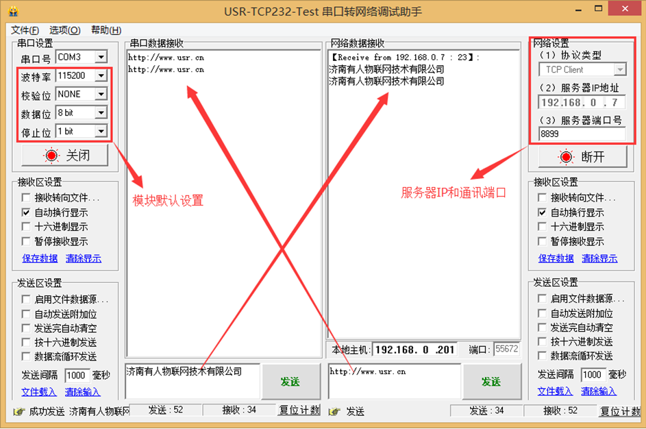 USR-TCP232-410S基本测试通信和使用方案(232串口)