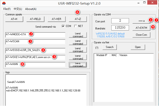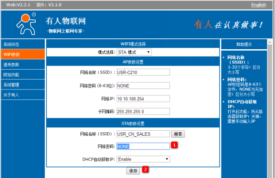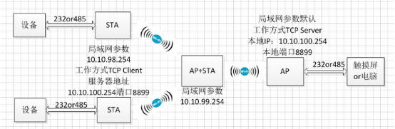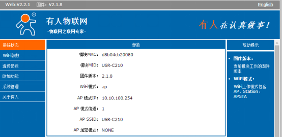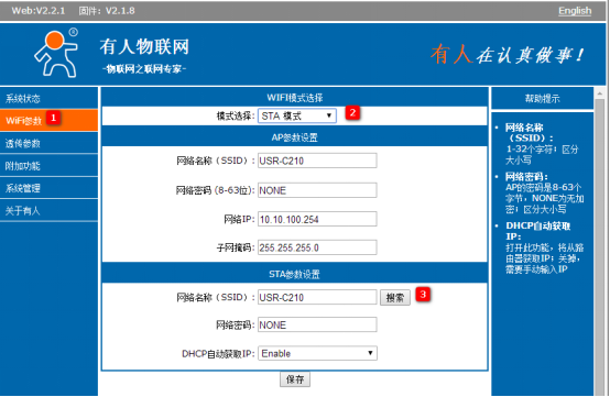 USR-C210使用AP+STA模式增加无线覆盖范围并通过串口进行数据收发