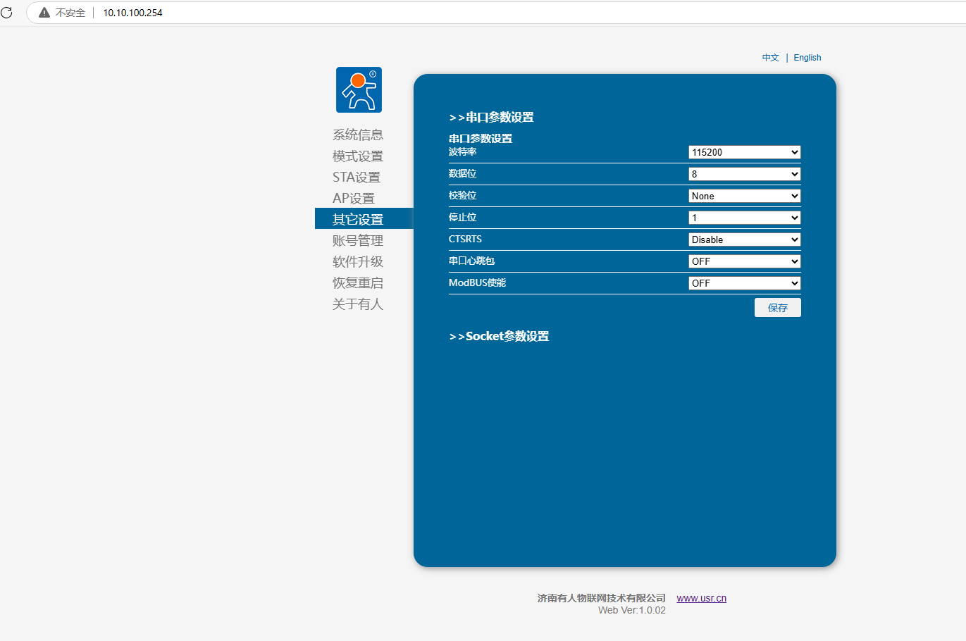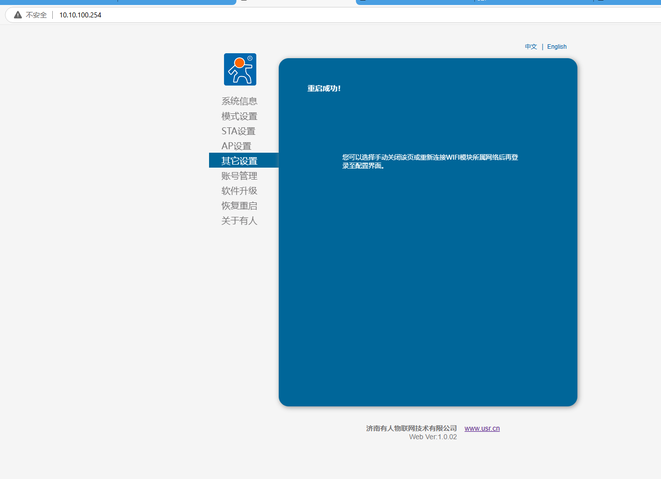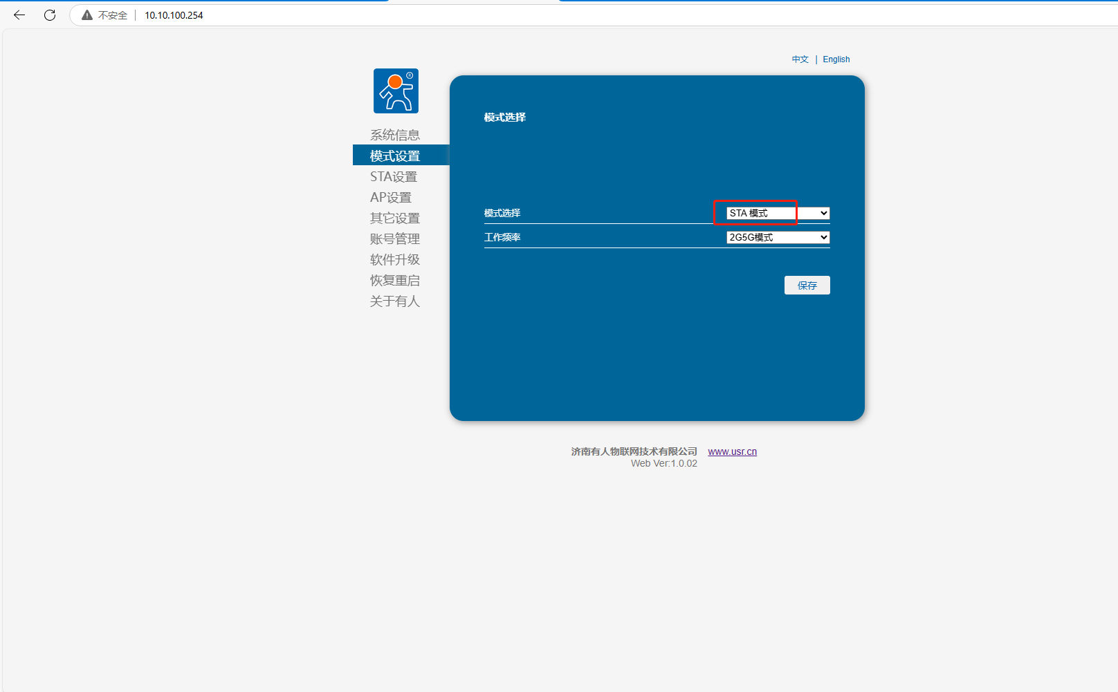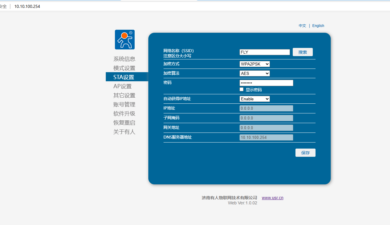 浏览器输入10.10.100.254,用户名和密码都是admin,登陆USR-DR164网页。