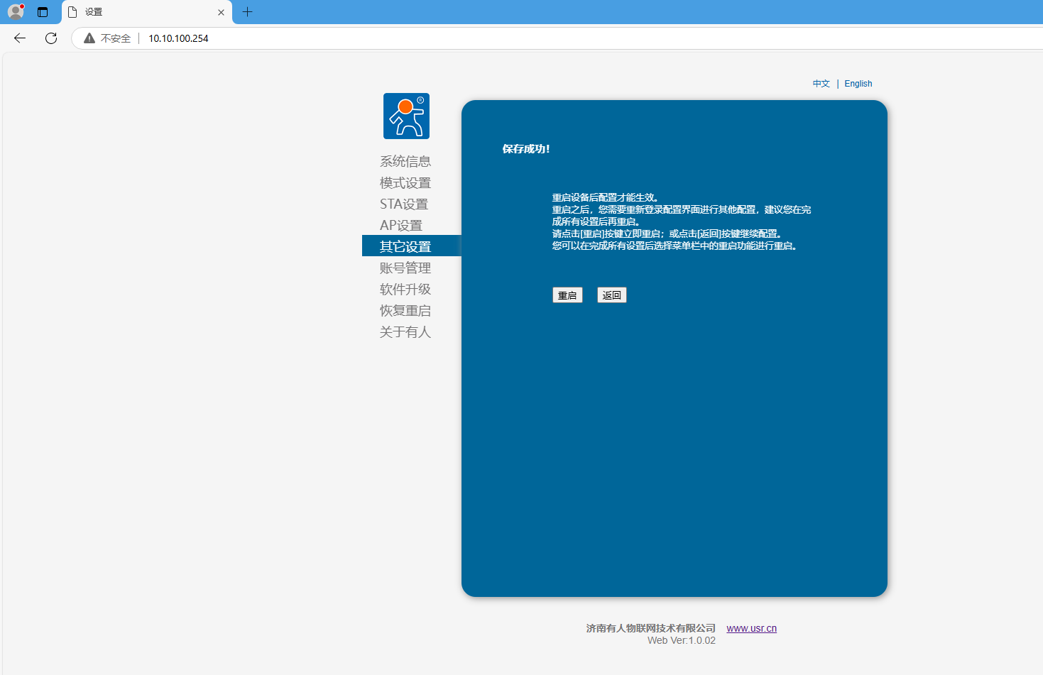 备注:参数修改,需要点击对应的保存,最后网页重启生效。