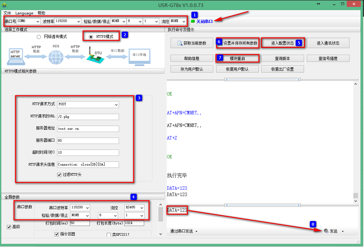 例如发送DATA=123