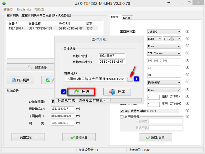 串口服务器 产品固件升级说明