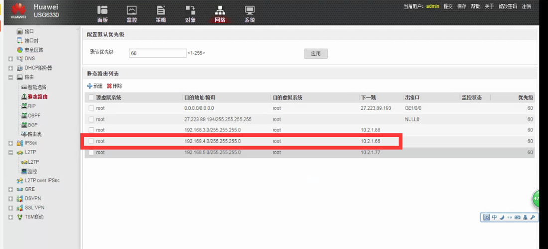2, 在华为路由器上增加静态路由