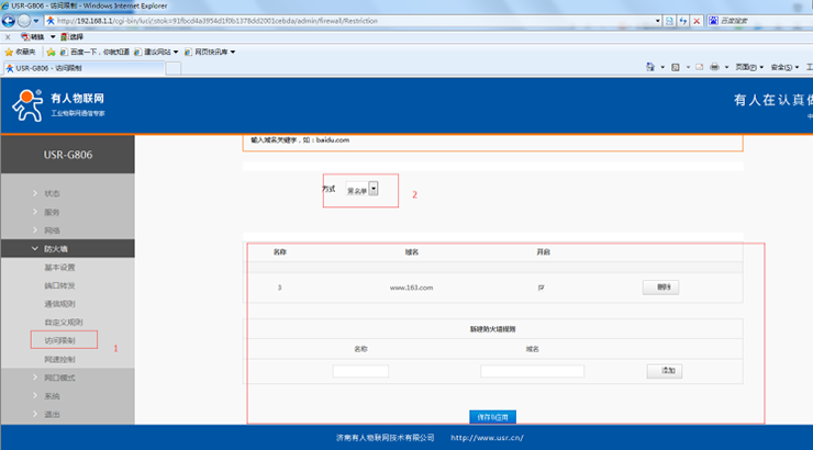 在使用路由器的应用中,客户会屏蔽对一些网站的访问,这个就需要我们设置黑名单来屏蔽这些网站。