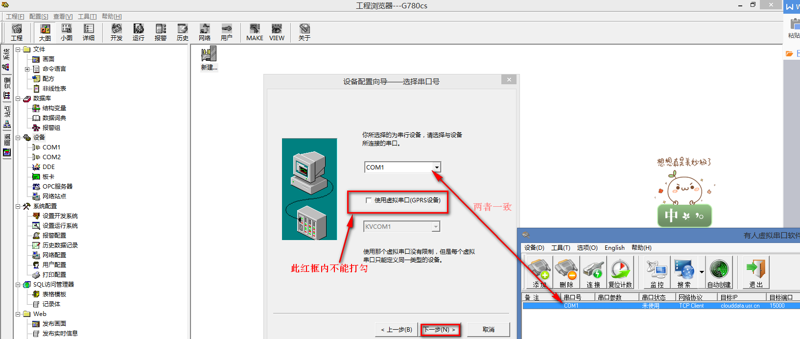 4.4 选择COM口,此COM号与虚拟串口软件上的COM号一致,点击“下一步”