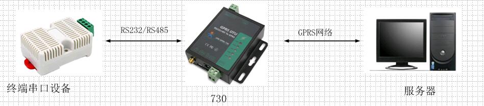 网络拓扑结构: 终端串口设备发送数据--->730--->服务器