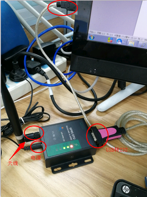 730串口通过USB转232/485接到电脑端,装上sim卡,接上天线,上电。