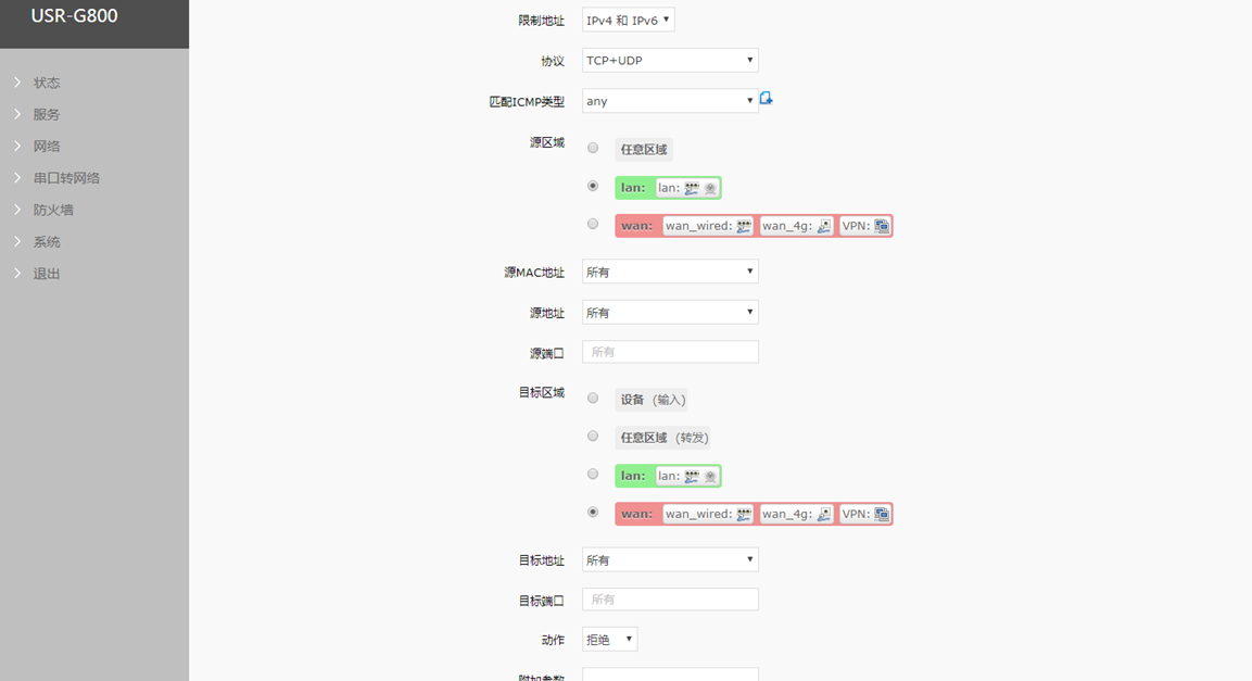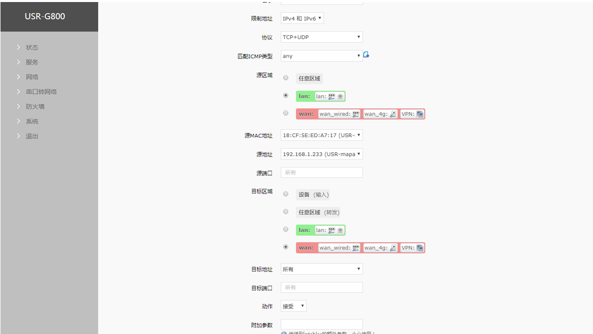 在使用路由器的应用中,客户会只允许指定内网设备上网,这个就需要我们防火墙策略来实现。
