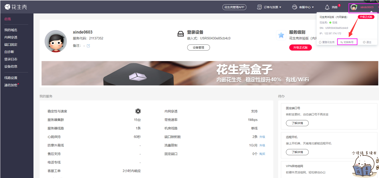 前期准备:①需要自行到花生壳官网注册自己的账号,并申请域名使用。②保证集中器可以上外网