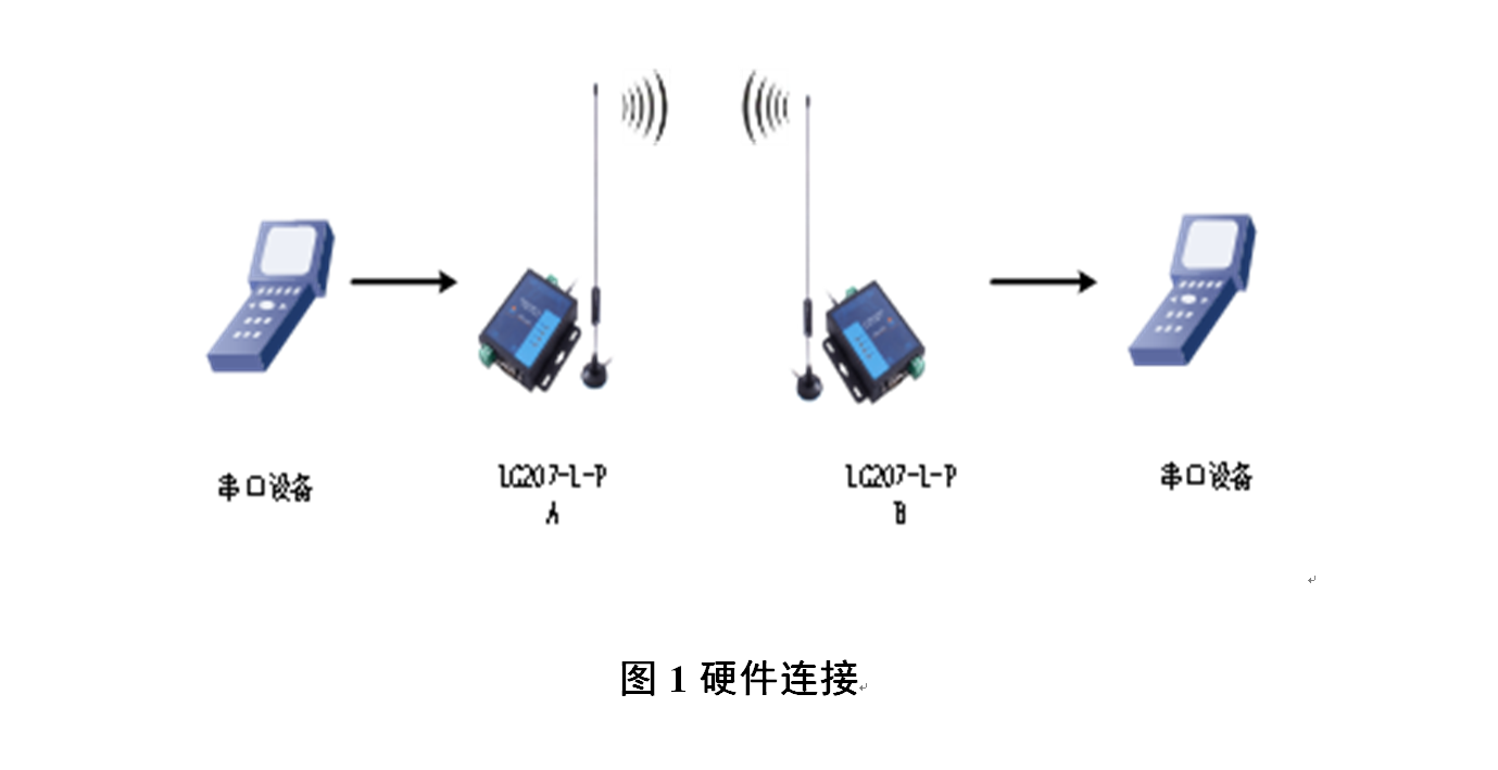 使用RS232串口线分别将LoRa数传终端A、B接入串口设备(以PC机代替),给LoRa数传终端装上天线,然后给LoRa数传终端上电。