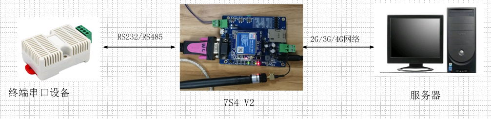 网络拓扑结构: 终端串口设备发送数据--->7S4 V2--->服务器