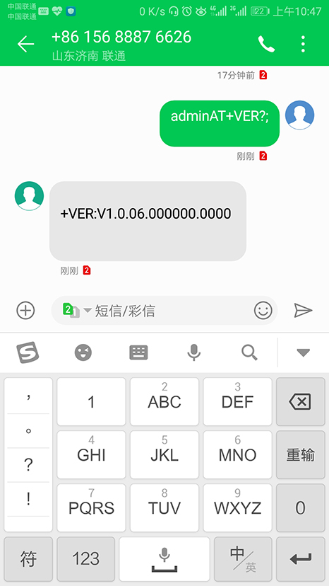 2. 通过任何一个手机发送固定格式的短信给DTU内的手机号