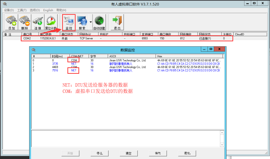 虚拟串口还有一个监控的功能,可以监控数据收发,见下图