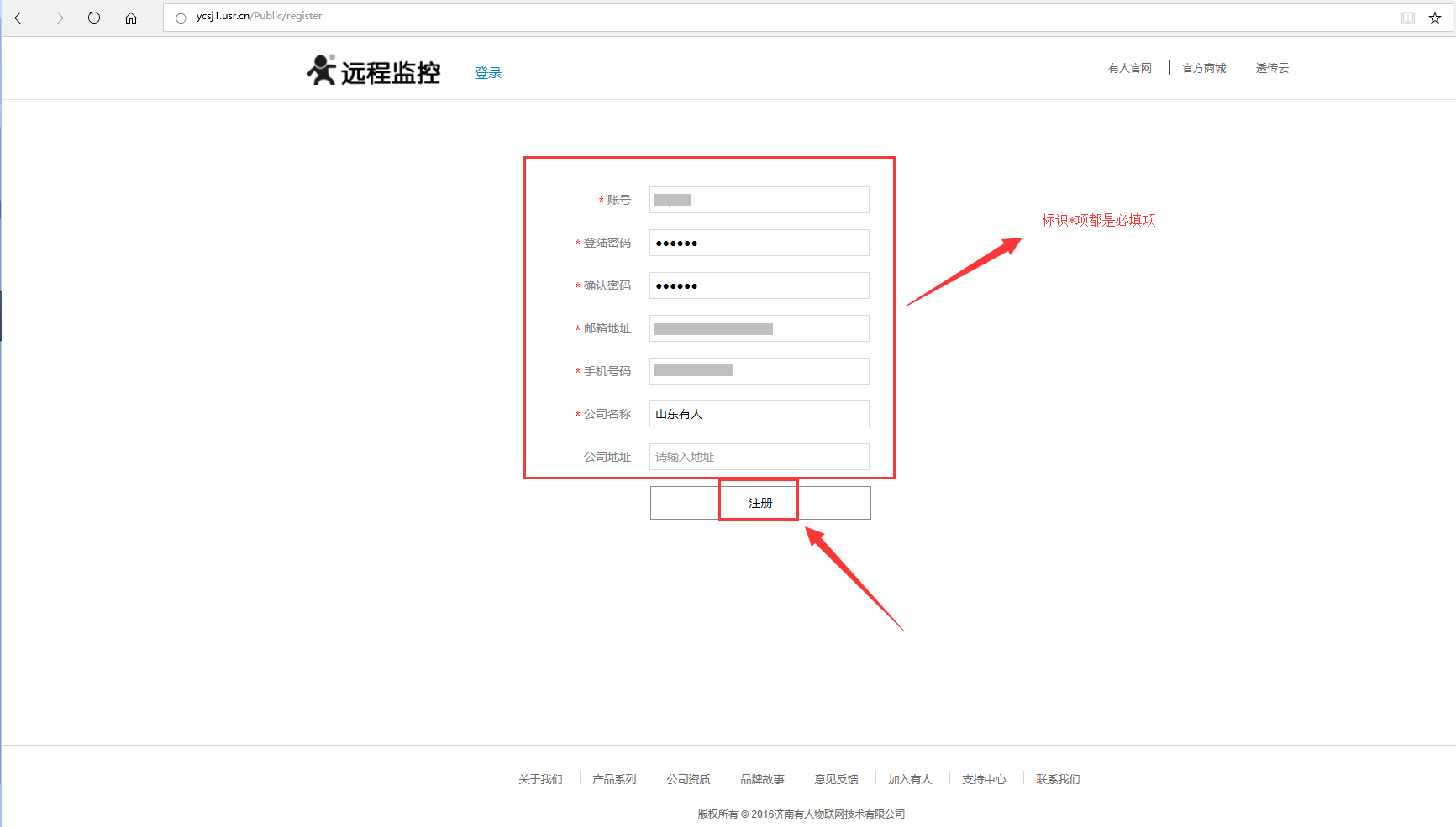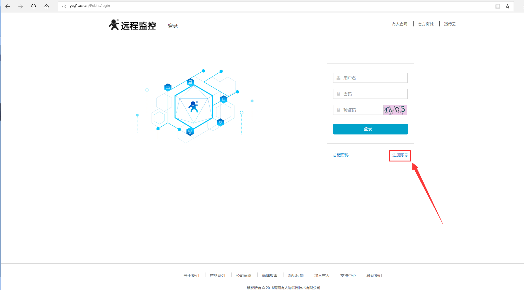 开启使用此功能之前,需要登录http://ycsj1.usr.cn远程监控后台注册账号,