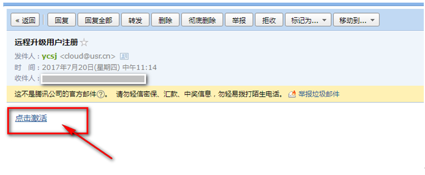 3、点击注册后,会向您填写的邮箱内发送一封邮件,如下截图