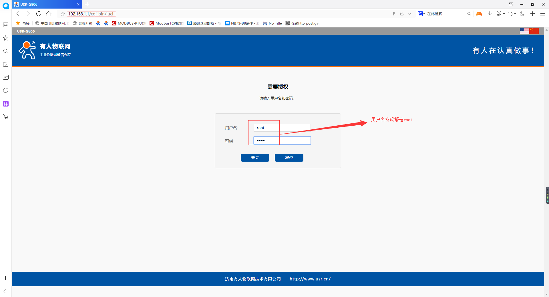 1、以上步骤完成后,打开路由器的配置网页,出厂默认地址是192.168.1.1 用户名密码均为root