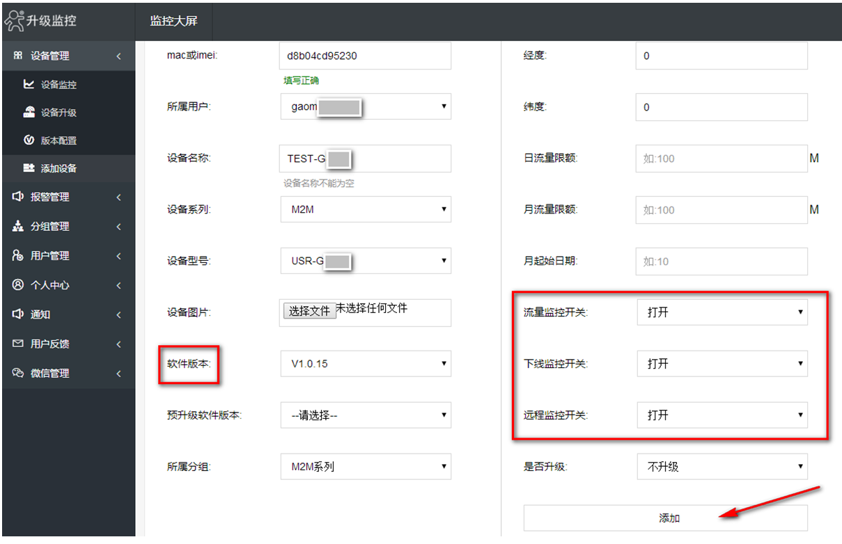 1)添加设备必须用MAC添加,不要用IMEI添加!MAC地址来源可以参看路由器外壳上的贴膜信息,或者是直接进入配置网页,查看lan口MAC地址