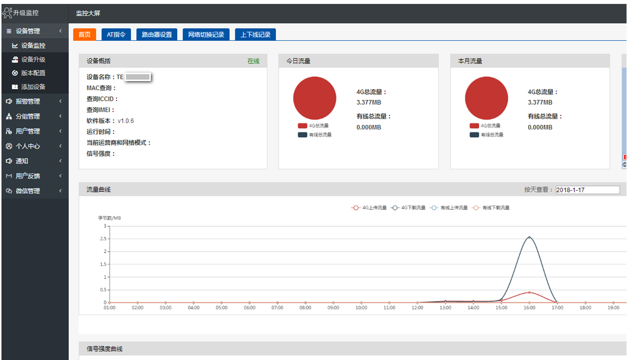 1、点击“设备监控”——点击在线设备 ID或MAC地址,可以监控到流量。