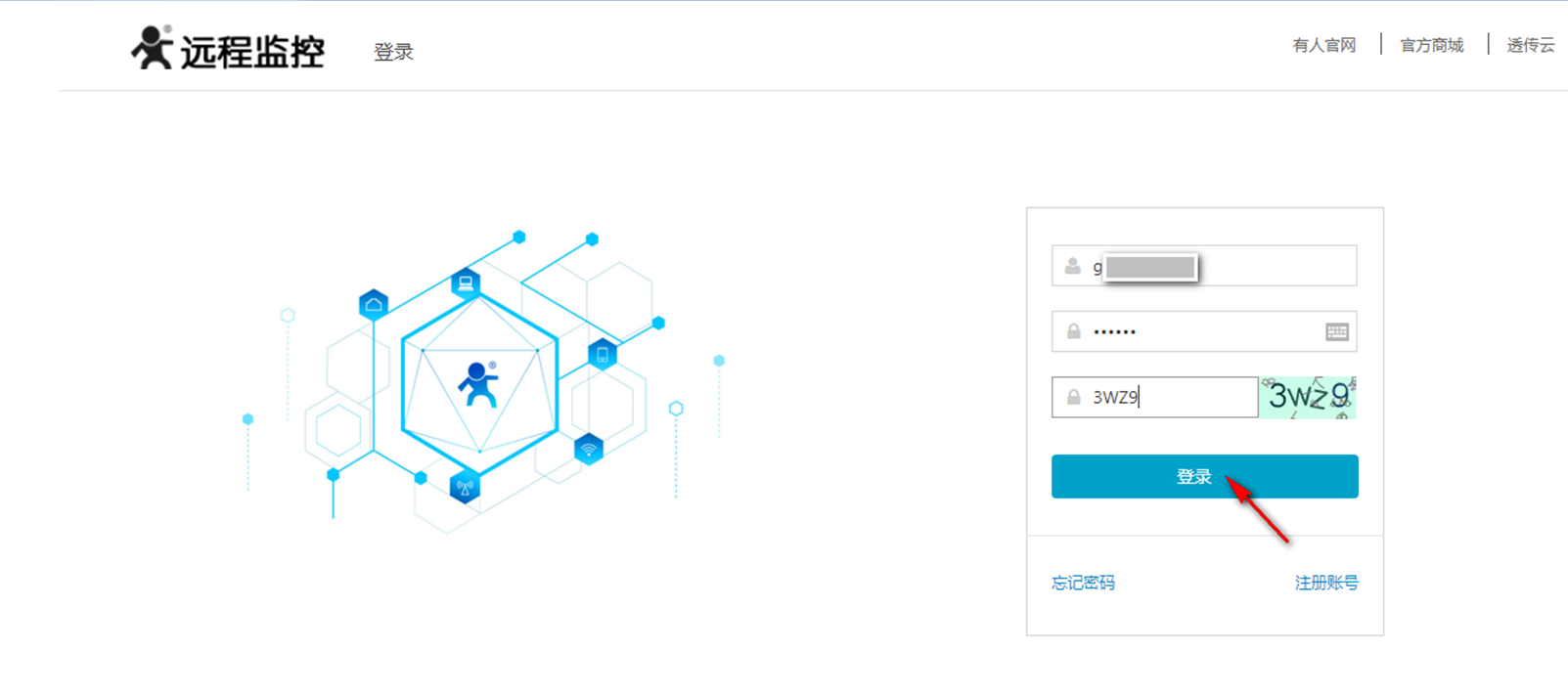 3、登陆远程监控后台http://ycsj1.usr.cn,填写审核过的账号、密码,验证码然后点击“登录”