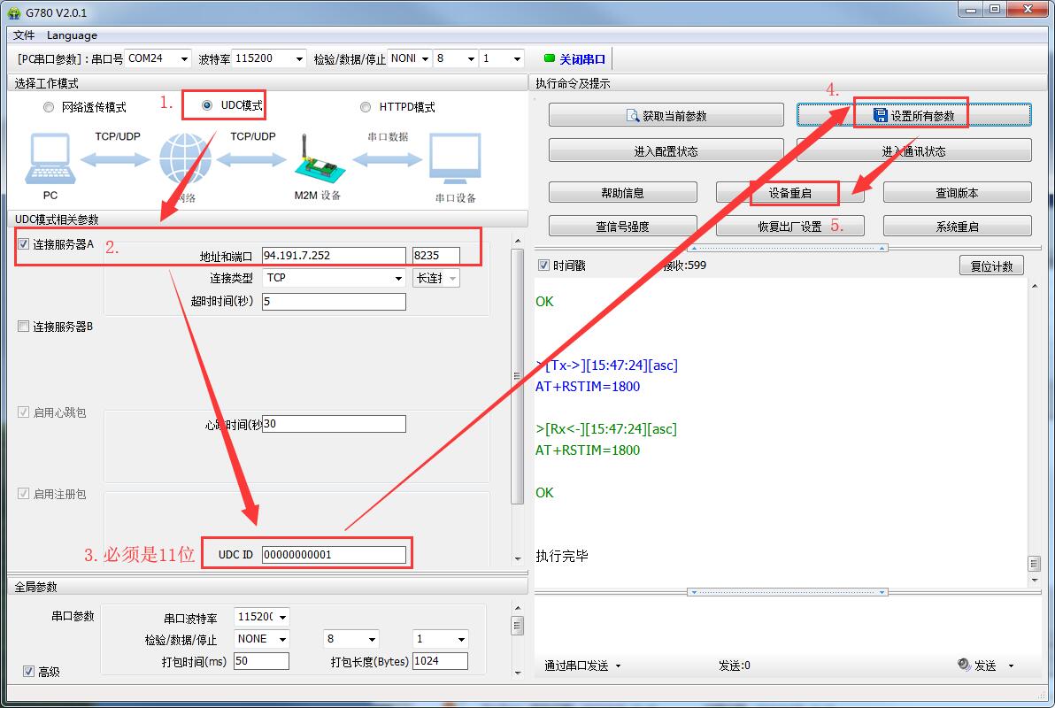 3>设置UDC ID,UDC ID最多支持11位,因为我司的测试软件要求UDC ID是11位,所以该案例中必须设置成11位;如果客户自己开发UDC服务器软件的话,按照自己服务器端的要求填写UDC ID即可。