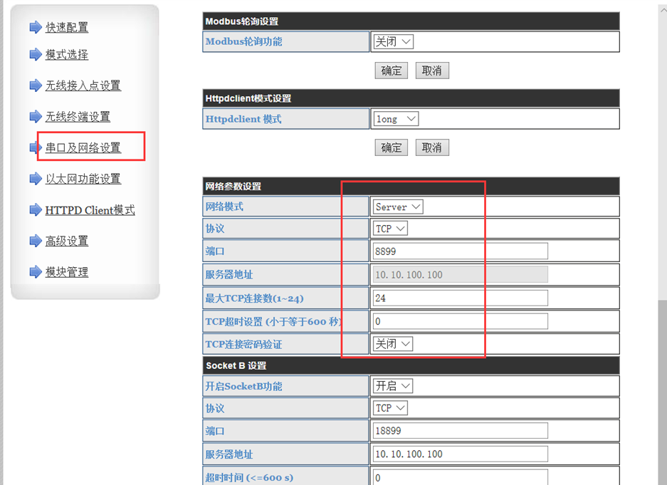 (1)第一种结果测试方法:打开有人串口转网络调试助手,参数配置如图