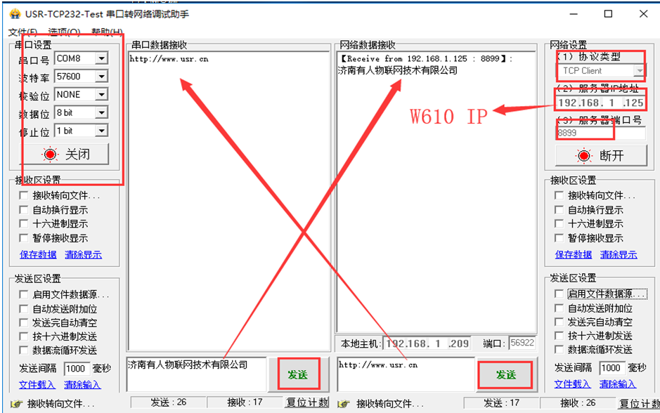 WIFI串口服务器 W610做sta连接局域网服务器通信