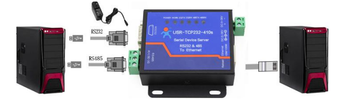 USR-TCP232-410S *2、标准的电源适配器*2、USB转232串口线*2、测试软件USR-TCP232-Test-V1.3、设置软件