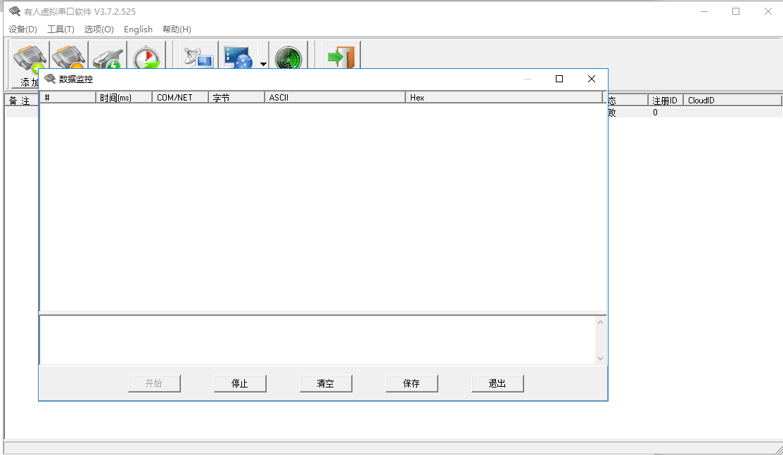 5. 监控按钮:这个是对相应的虚拟串口的数据进行监控,监控数据的收发和内容。