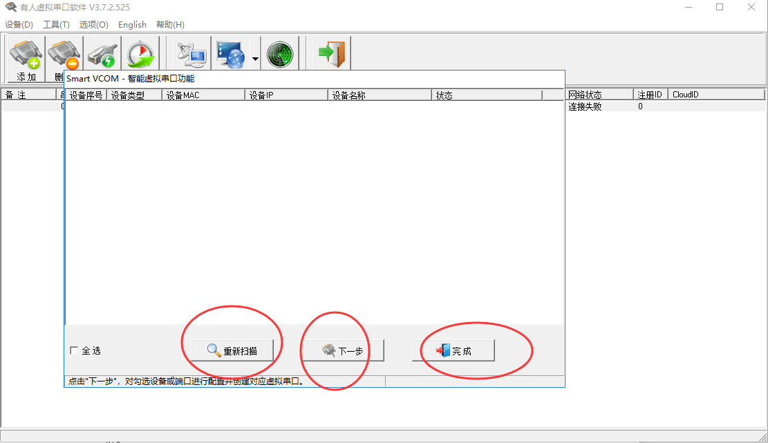 7. 自动创建:他可以搜索到与电脑在同一个局域网内的设备,然后自动的为这个设备创建一个虚拟串口。