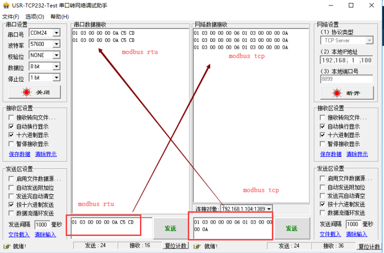 打开串口调试助手就行模拟,串口用usb转485,或者是usb转232接到电脑上,打开物理串口,右边设置服务器的ip和端口(如果都是电脑做服务器,就是电脑的ip和端口)